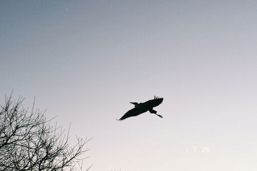 空を撮ろうとしていたら、偶然にサギが飛んで来て写ってくれた。
